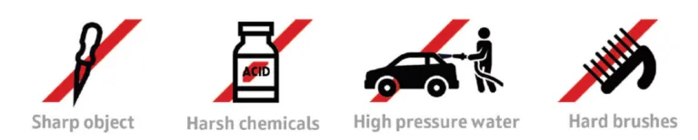 - Refrain from using hard brushes or harsh chemicals, as they can potentially cause harm.