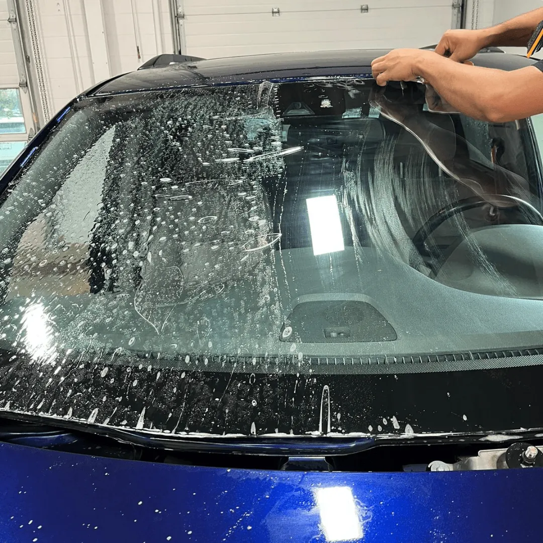 Tera Shield® and easily forms directly to the outermost ply of the vehicle windshield, effectively providing a durable, disposable eco-friendly option for today’s automotive windshield.